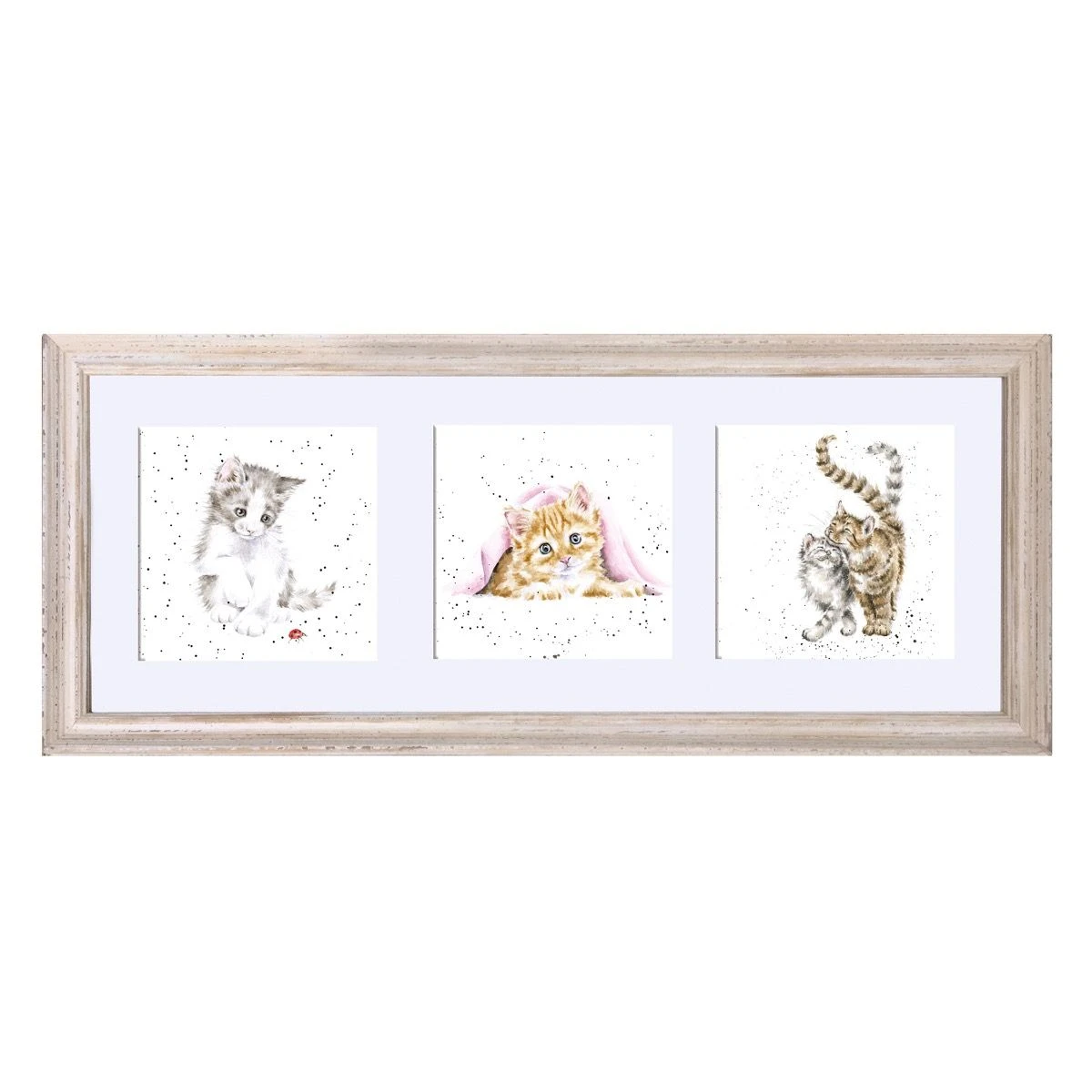 Our Trio of Cats holds three of our post poplar cat designs. Proudly Made in the UK with an ivory mount, the frame measures 610mm x 260mm.