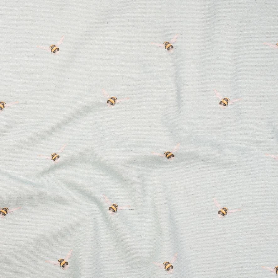 Featuring a gorgeous bee pattern on a lovely duck egg coloured background, this beautiful cotton linen blend fabric will make a gorgeous statement in any home and is ideal for making your own curtains, blinds or cushions. It has a vertical pattern repeat of 47cm. The pattern width is 47cm and total fabric width 142cm. To make the most of our beautiful fabrics, we recommend you wash them on a cool setting in a pillowcase or duvet cover. Available by the metre.