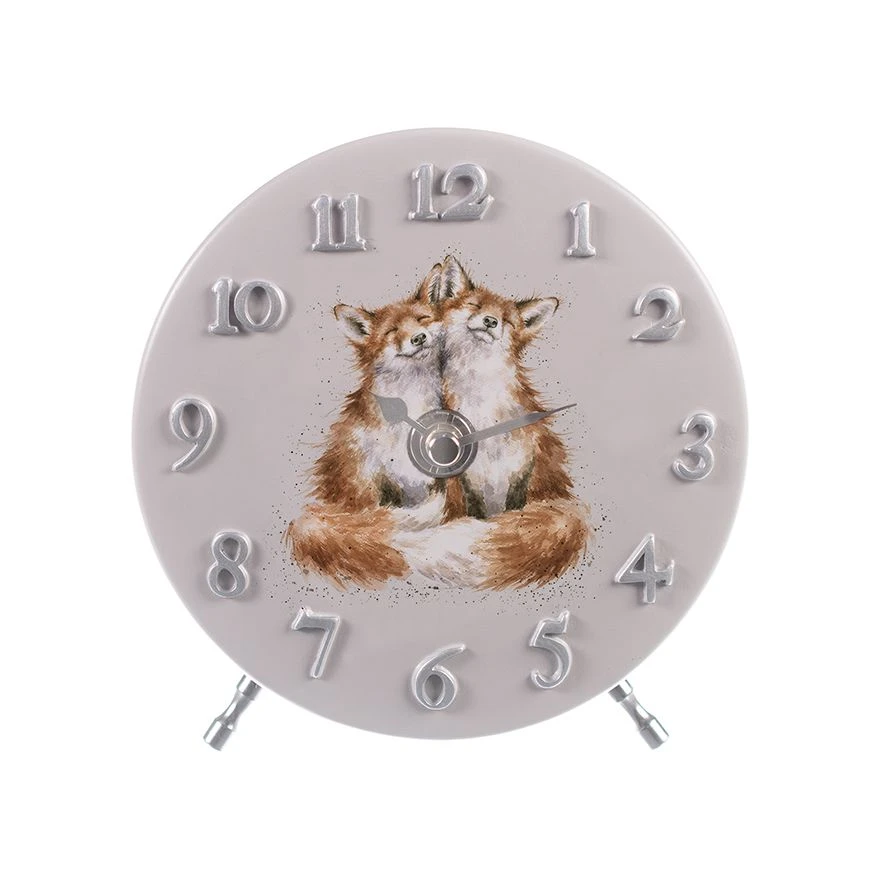 A welcome addition to any mantel piece, this beautiful clock featuring fox designs is perfect for any room or bedside table. The clocks have the same contemporary soft grey, matt finish as our larger wall clocks. Each number is embossed and hand painted with a metallic silver finish and features beautiful illustrations across the front and sides of the clock. Each mantel clock comes packaged in an illustrated kraft box making a fabulous gift. Clock measures 128mm x 120mm x 58mm. Box measures 160mm x 160mm x 90mm. Made from resin.