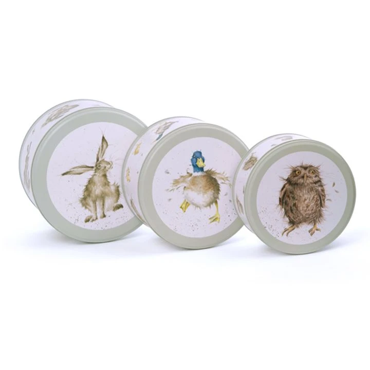 Perfect for storing cakes and baked treats, this beautifully illustrated cake tin nest is perfect for your kitchen and a great gift for someone who loves to bake. This cake tin nest has green edging and is illustrated on every surface featuring hare, ducks and owls from ‘The Country Set’ collection. Contains three tins measuring 250mm diameter, 225mm diameter and 195mm diameter.