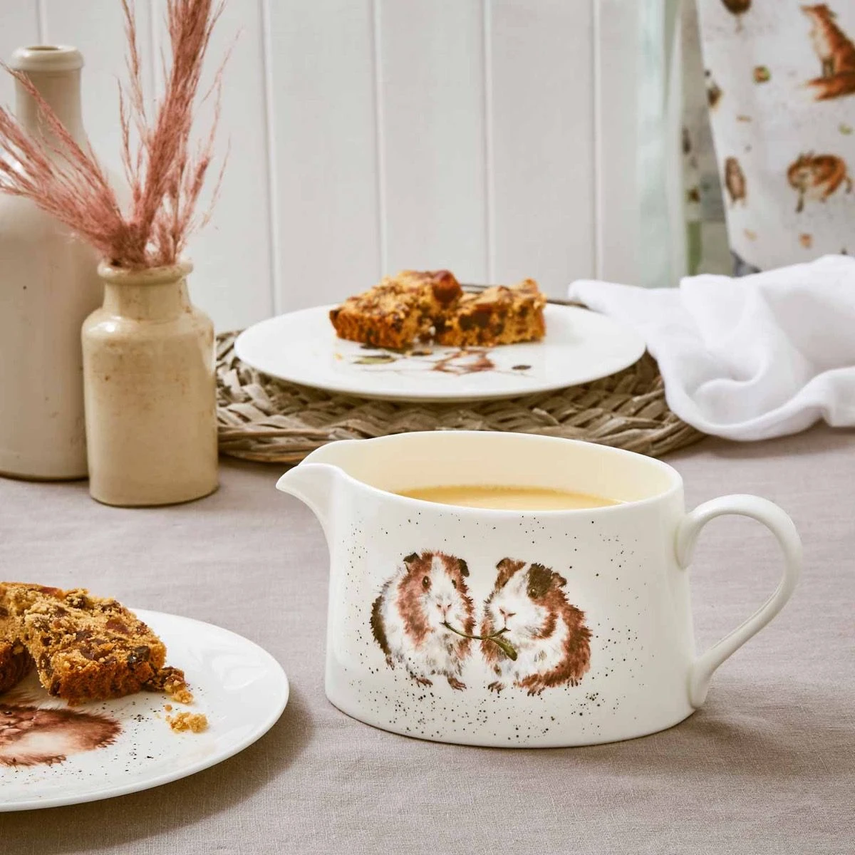Add the finishing touch to your family get togethers in true country style with this artistically depicted sauce boat. Featuring two fluffy guinea pigs on the front, and able to hold a pint of sauce, this sauce boat is the perfect addition to your dinner parties. Serve up delicious gravy with your roast dinners or use to pour silky smooth vanilla custard over your teatime treats. Wonderfully practical too, being dishwasher and microwave safe. Capacity: 0.55L/ 1 pint. Original design from watercolour. Made from beautiful porcelain. Dishwasher and microwave safe