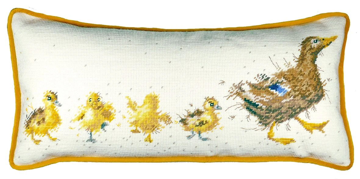 Recreate your own piece of Wrendale artwork with our fabulous tapestry kits from Bothy Threads. This design features the ‘Mother Duck’ from our ‘Country Set’ greeting card range. Each kit contains: 10 count full colour printed Zweigart interlock canvas, Anchor Tapestry wools and stranded cottons (to add the back stitch details), needle, stitch diagram and instructions. Finished size 58.5cm x 28.5cm. Cushion backing and pad are not included.