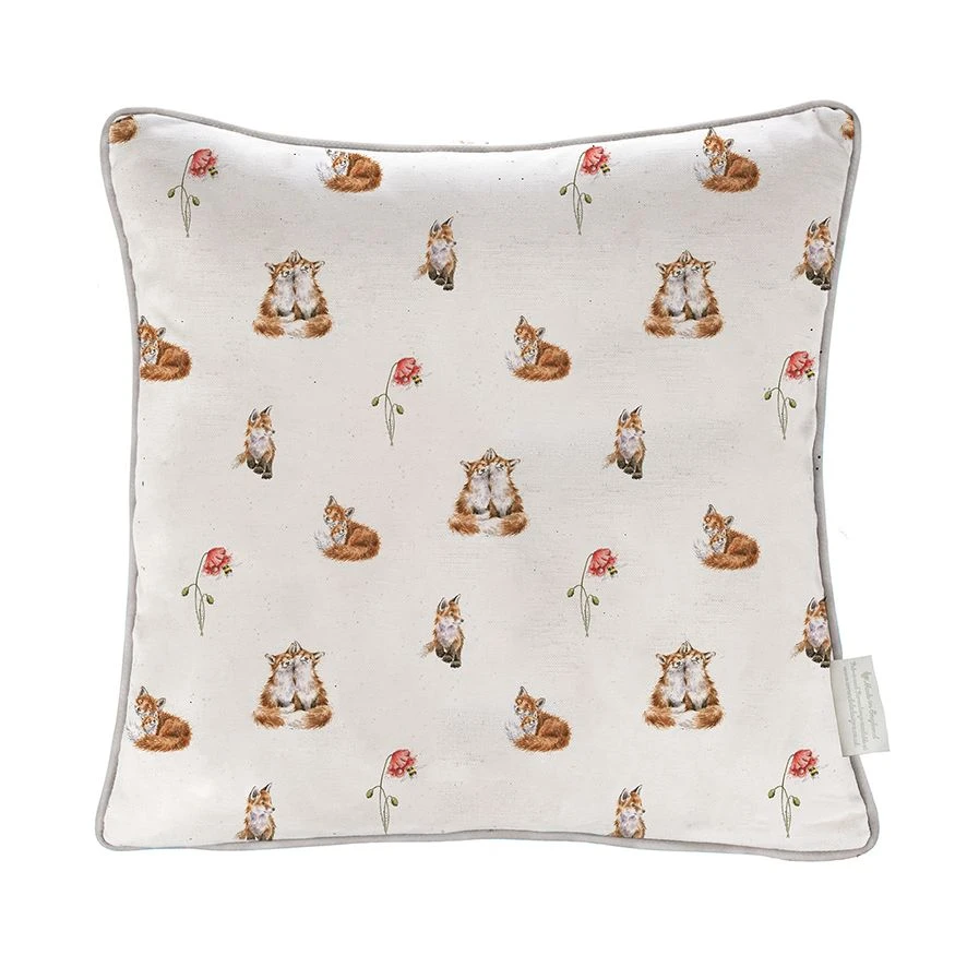 This cushion features the ‘Poppy Fields’ fox illustration. This cushion has piping around the edge in a light grey which compliments the cushion beautifully. The design has been printed onto quality cotton-linen blend fabric with a coordinating design on the reverse and is filled with ethically sourced feathers. Measures 400mm x 400mm.