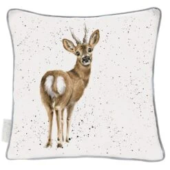 This large statement cushion features the ‘The Roe Deer’ and ‘Best Ever’ stag design. This cushion has piping around the edge in a grey hue which compliments the cushion beautifully. The design has been printed onto quality cotton-linen blend fabric with a coordinating design on the reverse and is feather filled. 60cm square.